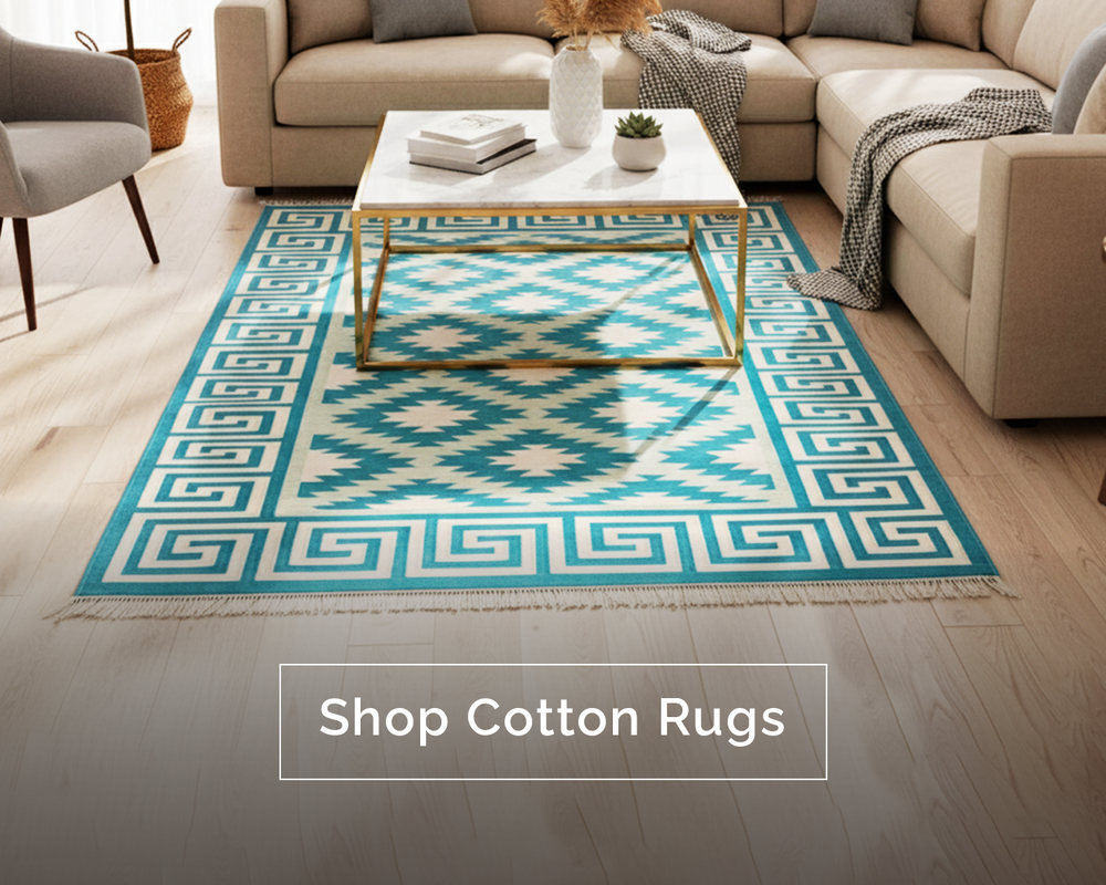 Handwoven Cotton-Jute Ethnic Kilim Rug - Vintage Geometric Design