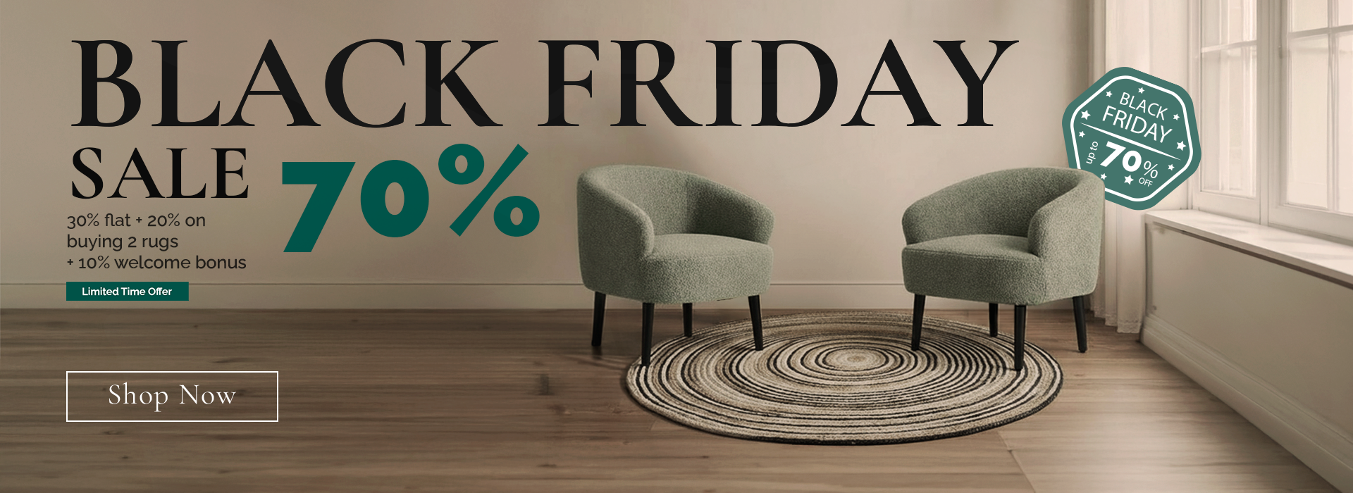 Handwoven Cotton-Jute Natural Ethnic Rug - Vintage Geometric Design