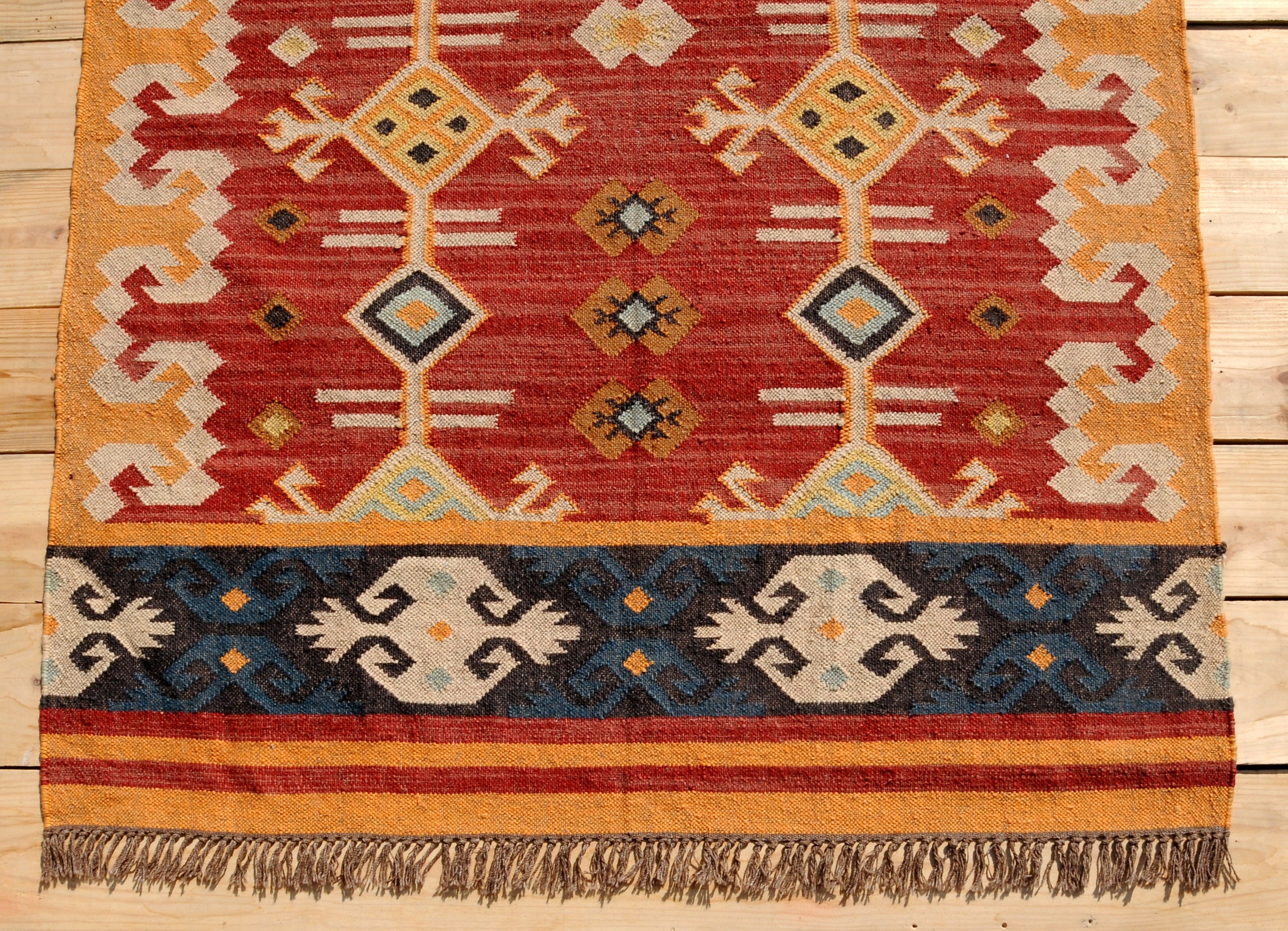 Bohemian Handwoven Rug - Wool and Jute Kilim Rug