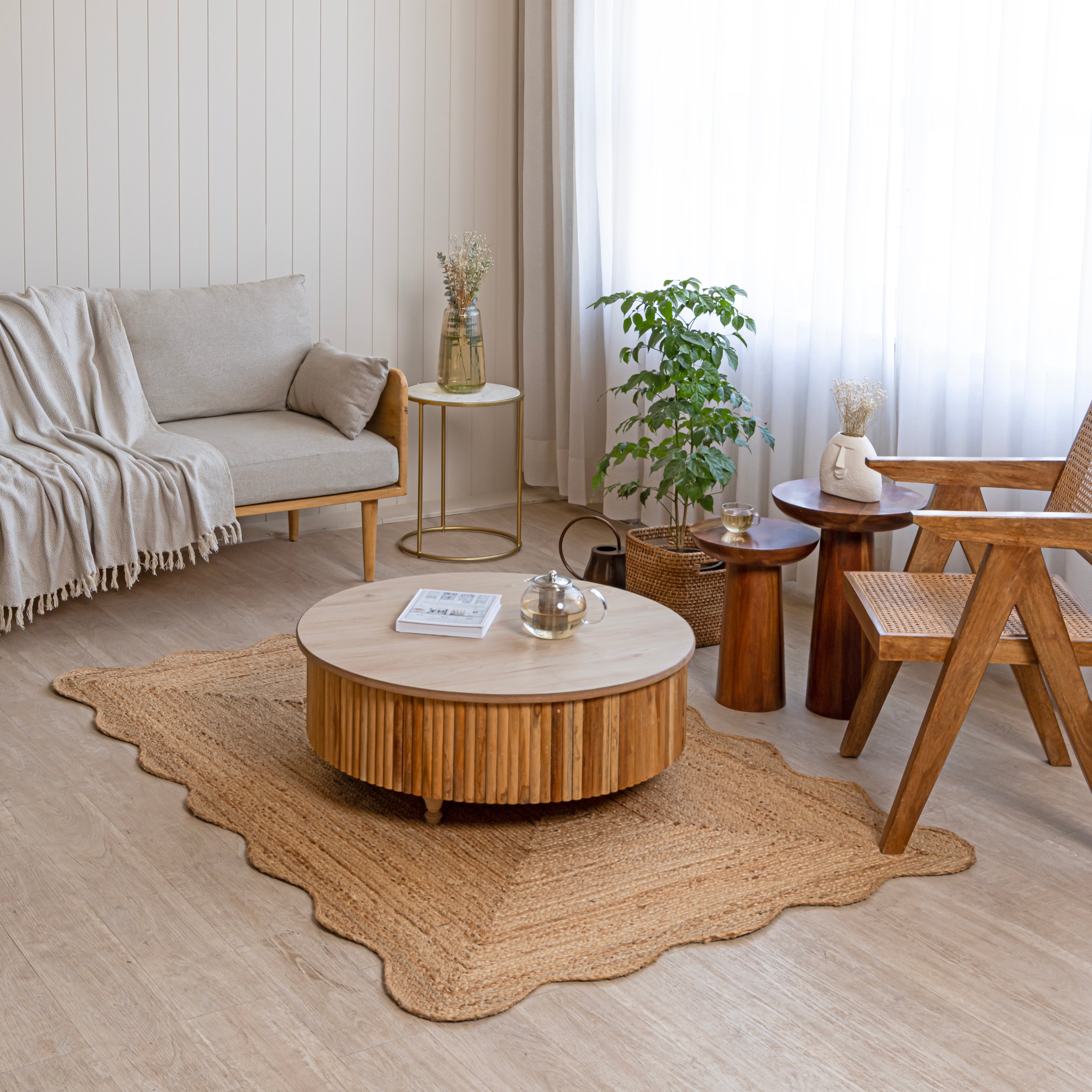 Crafted with 100% Jute using a combination of hand-braided and machine-stitched techniques, this rug offers durability and easy maintenance. The 200 gm/sq ft weight ensures it is sturdy yet lightweight, making it ideal for areas like living rooms, bedrooms, or even home offices.
